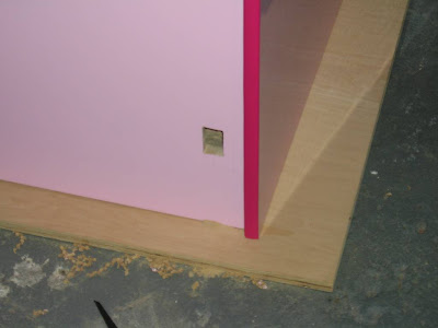 And here's the hole post-installation - I secured the plug recepticle to the cabinet using two screws and then added some screw caps for a "finished" look: